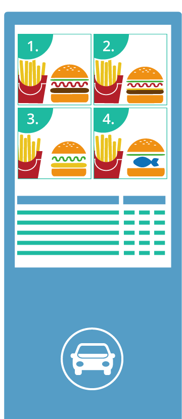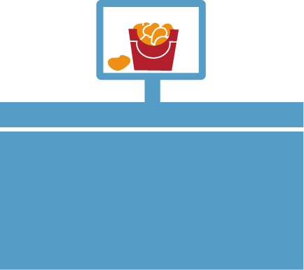 Small screens at the “Point of Purchase” can have a dramatic impact on your bottom line. Affordable, dynamic screens can be deployed throughout the line to influence consumer decisions or on the back of the PoS terminal to advertise a drink or side.