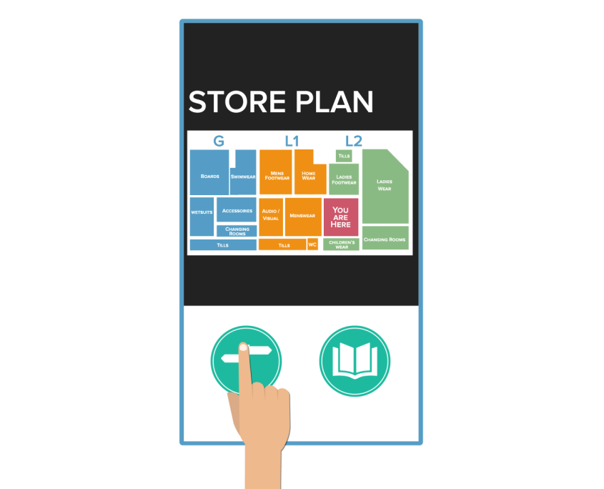 Many retail store layouts are complex and difficult to understand. Digital signage wayfinding and store directory applications provide customers with a simple and interactive way to show them where the product is they are interested in and how to get there from their current location.